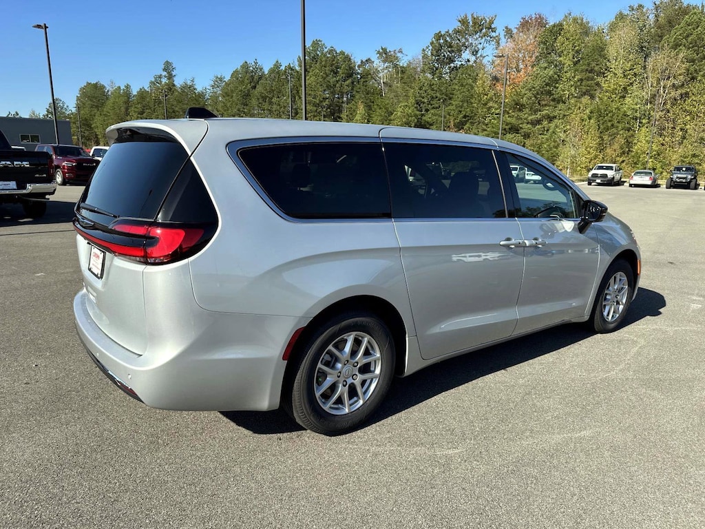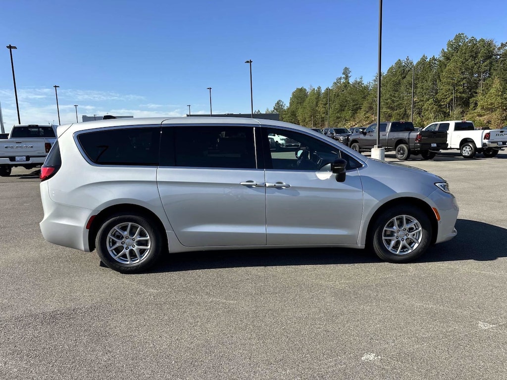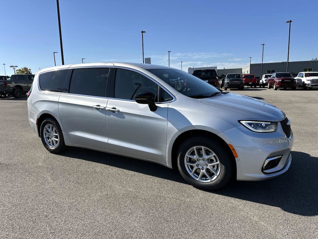 1 Year Trial (Registration Required), 10.1" Touchscreen Display, 115V Auxiliary Power Outlet, 13 Alpine Speakers, 17" x 7.0" Aluminum Wheels, 220 Amp Alternator, 3-Channel Video Remote Control, 3.25 Axle Ratio, 360 Surround View Camera System, 3rd row seats: split-bench, 3rd Row USB Charge Port, 4-Wheel Disc Brakes, 4G LTE Wi-Fi Hot Spot, 506 Watt Amplifier, 6 Speakers, ABS brakes, Air Conditioning, Alloy wheels, AM/FM radio: SiriusXM, Amazon Fire TV Built-In, Apple CarPlay, Apple CarPlay/Android Auto, Auto-dimming Rear-View mirror, Automatic temperature control, Black Seats, Brake assist, Bumpers: body-color, Caprice Leatherette Bucket Seats, Compass, Connected Travel & Traffic Services, Connectivity - US/Canada, Delay-off headlights, Disassociated Touchscreen Display, Driver door bin, Driver vanity mirror, Driver's Seat Mounted Armrest, Dual front impact airbags, Dual front side impact airbags, Electronic Stability Control, Emergency communication system: Chrysler Connect, For Details, Visit DriveUconnect.com, Four wheel independent suspension, Front anti-roll bar, Front Bucket Seats, Front dual zone A/C, Front fog lights, Front Passenger Auto Advance N Return, Front reading lights, Fully automatic headlights, Garage door transmitter, Google Android Auto, GPS Antenna Input, GPS Navigation, HD Radio, Heated door mirrors, Heated front seats, Heated steering wheel, High Definition Multimedia Interface, Illuminated entry, Integrated Active Noise Cancellation, Integrated Center Stack Radio, Integrated Voice Command w/Bluetooth, Knee airbag, Low tire pressure warning, Memory seat, Occupant sensing airbag, Outside temperature display, Overhead airbag, Overhead console, Panic alarm, ParkSense Front/Rear Park Assist w/Stop, ParkView Rear Back-Up Camera, Passenger door bin, Passenger seat mounted armrest, Passenger vanity mirror, Power 2-Way Passenger Lumbar Adjust, Power Adjust 8-Way Front Passenger Seat, Power door mirrors, Power driver seat, Power Liftgate, Power steering, Power windows, Quick Order Package 27L, Radio data system, Radio: Uconnect 5 Nav w/10.1" Display, Radio: Uconnect 5 w/10.1" Display, Rain sensing wipers, Rear air conditioning, Rear reading lights, Rear window defroster, Rear window wiper, Reclining 3rd row seat, Remote keyless entry, Safety Sphere, Seatback Video Screens, Security system, SiriusXM w/360L, Speed control, Split folding rear seat, Spoiler, Steering wheel mounted audio controls, Tachometer, Telescoping steering wheel, Tilt steering wheel, Touring Suspension, Traction control, Trip computer, Turn signal indicator mirrors, Uconnect Theater Family Group II, USB Host Flip, Variably intermittent wipers, Video USB Port, Voltmeter. 2026 Chrysler Pacifica Select Select Silver Mist Clearcoat FWD 9-Speed 948TE Automatic 3.6L V6 24V VVT 19/28 City/Highway MPG