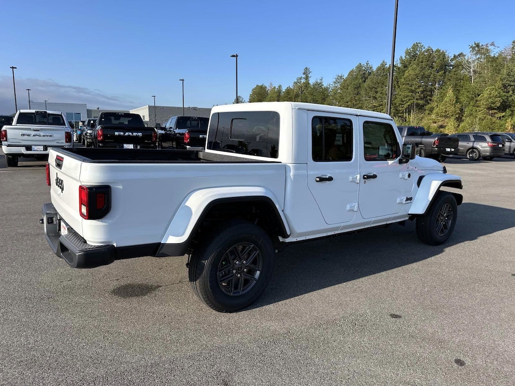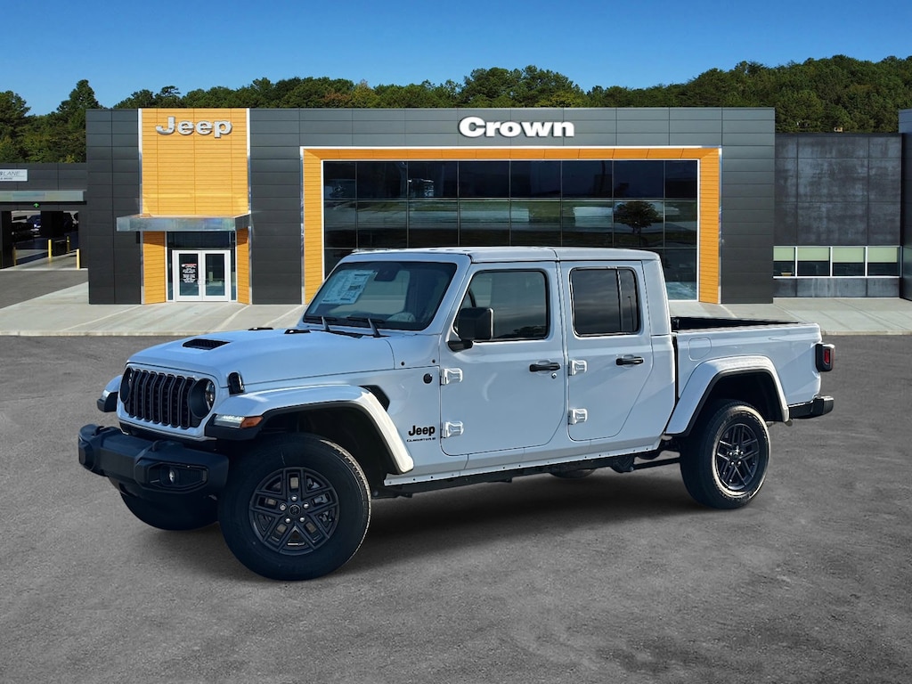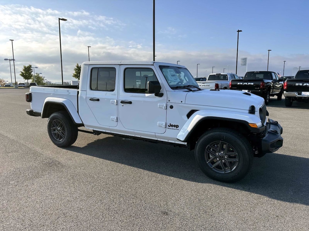 110 MPH Vehicle Max Speed Calibration, 115V Auxiliary Power Outlet, 12.3" Touchscreen Display, 3.73 Rear Axle Ratio, 4-Wheel Disc Brakes, 400W Inverter, 4G LTE Wi-Fi Hot Spot, 8 Speakers, ABS brakes, Advanced Brake Assist, Air Conditioning, Alexa Built-In, Alpine Premium Audio System, AM/FM radio: SiriusXM, Apple CarPlay, Apple CarPlay/Android Auto, Auto-Dimming Rear-View Mirror, Automatic Headlamps, Bluetooth Wireless Speaker, Body Color 3-Piece Hard Top, Body Color Fender Flares (2-Piece), Brake assist, Cloth Low-Back Bucket Seats, Compass, Connected Travel & Traffic Services, Connectivity - US/Canada, Convenience Group, Corning Gorilla Glass, Dark Sky Appearance Package, Daytime Running Lamp System, Daytime Running Lamps LED Accents, Deep Tint Sunscreen Windows, Delay-off headlights, Driver door bin, Driver vanity mirror, Dual front impact airbags, Dual front side impact airbags, Electronic Stability Control, Emergency/Assistance Call, Enhanced Adaptive Cruise Control, Freedom Panel Storage Bag, Front anti-roll bar, Front Bucket Seats, Front Center Armrest w/Storage, Front Door Locks 2-Door Passive Entry, Front fog lights, Front LED Fog Lamps, Front License Plate Bracket, Front reading lights, Full Speed Forward Collision Warning Plus, Google Android Auto, GPS Antenna Input, GPS Navigation, HD Radio, Heated Front Seats, Heated Steering Wheel, Illuminated entry, Integrated Center Stack Radio, Integrated roll-over protection, Integrated Voice Command w/Bluetooth, LED Headlamp & Fog Lamp Group, LED Premium Reflector Headlamps, Low tire pressure warning, Media Hub w/2 Charge Only USBs, Mold In Color Bumper w/Gloss Black, MOPAR Spray In Bedliner, Normal Duty Plus Suspension, Normal Duty Suspension, Occupant sensing airbag, Outside temperature display, Overhead airbag, Panic alarm, ParkView Rear Back-Up Camera, Passenger door bin, Passenger vanity mirror, Performance Hood, Power Heated Mirrors, Power steering, Power windows, Premium Wrapped Steering Wheel, Quick Order Package 24S Sport S, Radio data system, Radio: Uconnect 5 Nav w/12.3" Display, Radio: Uconnect 5 w/12.3" Display, Rear anti-roll bar, Rear reading lights, Rear Sliding Window, Rear Window Defroster, Remote keyless entry, Remote Start System, Security Alarm, SiriusXM Radio Service, SiriusXM w/360L, Speed control, Split folding rear seat, Steering wheel mounted audio controls, Sun Visors w/Illuminated Vanity Mirrors, Tachometer, Technology Group, Telescoping steering wheel, Tilt steering wheel, Traction control, Trip computer, Universal Garage Door Opener, USB Host Flip, Variably intermittent wipers, Voltmeter, Wheels: 17" x 7.5" Black Steel Styled, Wheels: 17" x 7.5" Gray. 2025 Jeep Gladiator Sport Sport Bright White Clearcoat 4WD 8-Speed Automatic 3.6L V6 24V VVT