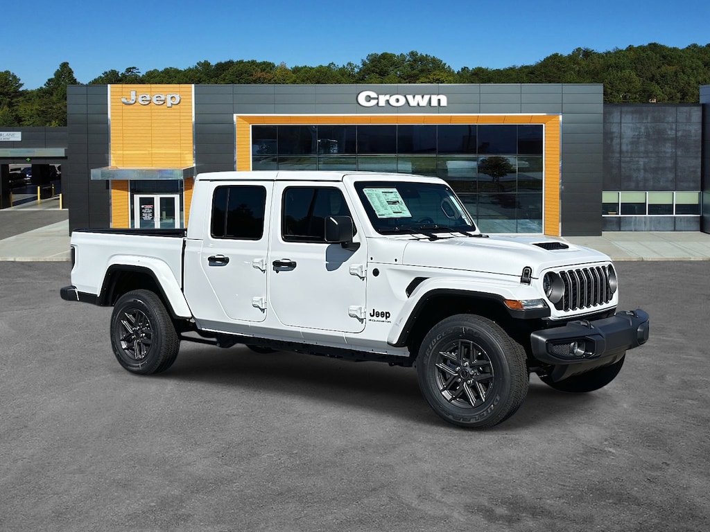 110 MPH Vehicle Max Speed Calibration, 115V Auxiliary Power Outlet, 12.3" Touchscreen Display, 3.73 Rear Axle Ratio, 4-Wheel Disc Brakes, 400W Inverter, 4G LTE Wi-Fi Hot Spot, 8 Speakers, ABS brakes, Advanced Brake Assist, Air Conditioning, Alexa Built-In, Alpine Premium Audio System, AM/FM radio: SiriusXM, Apple CarPlay, Apple CarPlay/Android Auto, Auto-Dimming Rear-View Mirror, Automatic Headlamps, Bluetooth Wireless Speaker, Body Color 3-Piece Hard Top, Body Color Fender Flares (2-Piece), Brake assist, Cloth Low-Back Bucket Seats, Compass, Connected Travel & Traffic Services, Connectivity - US/Canada, Convenience Group, Corning Gorilla Glass, Dark Sky Appearance Package, Daytime Running Lamp System, Daytime Running Lamps LED Accents, Deep Tint Sunscreen Windows, Delay-off headlights, Driver door bin, Driver vanity mirror, Dual front impact airbags, Dual front side impact airbags, Electronic Stability Control, Emergency/Assistance Call, Enhanced Adaptive Cruise Control, Freedom Panel Storage Bag, Front anti-roll bar, Front Bucket Seats, Front Center Armrest w/Storage, Front Door Locks 2-Door Passive Entry, Front fog lights, Front LED Fog Lamps, Front License Plate Bracket, Front reading lights, Full Speed Forward Collision Warning Plus, Google Android Auto, GPS Antenna Input, GPS Navigation, HD Radio, Heated Front Seats, Heated Steering Wheel, Illuminated entry, Integrated Center Stack Radio, Integrated roll-over protection, Integrated Voice Command w/Bluetooth, LED Headlamp & Fog Lamp Group, LED Premium Reflector Headlamps, Low tire pressure warning, Media Hub w/2 Charge Only USBs, Mold In Color Bumper w/Gloss Black, MOPAR Spray In Bedliner, Normal Duty Plus Suspension, Normal Duty Suspension, Occupant sensing airbag, Outside temperature display, Overhead airbag, Panic alarm, ParkView Rear Back-Up Camera, Passenger door bin, Passenger vanity mirror, Performance Hood, Power Heated Mirrors, Power steering, Power windows, Premium Wrapped Steering Wheel, Quick Order Package 24S Sport S, Radio data system, Radio: Uconnect 5 Nav w/12.3" Display, Radio: Uconnect 5 w/12.3" Display, Rear anti-roll bar, Rear reading lights, Rear Sliding Window, Rear Window Defroster, Remote keyless entry, Remote Start System, Security Alarm, SiriusXM Radio Service, SiriusXM w/360L, Speed control, Split folding rear seat, Steering wheel mounted audio controls, Sun Visors w/Illuminated Vanity Mirrors, Tachometer, Technology Group, Telescoping steering wheel, Tilt steering wheel, Traction control, Trip computer, Universal Garage Door Opener, USB Host Flip, Variably intermittent wipers, Voltmeter, Wheels: 17" x 7.5" Black Steel Styled, Wheels: 17" x 7.5" Gray. 2025 Jeep Gladiator Sport S Sport S Bright White Clearcoat 4WD 8-Speed Automatic 3.6L V6 24V VVT