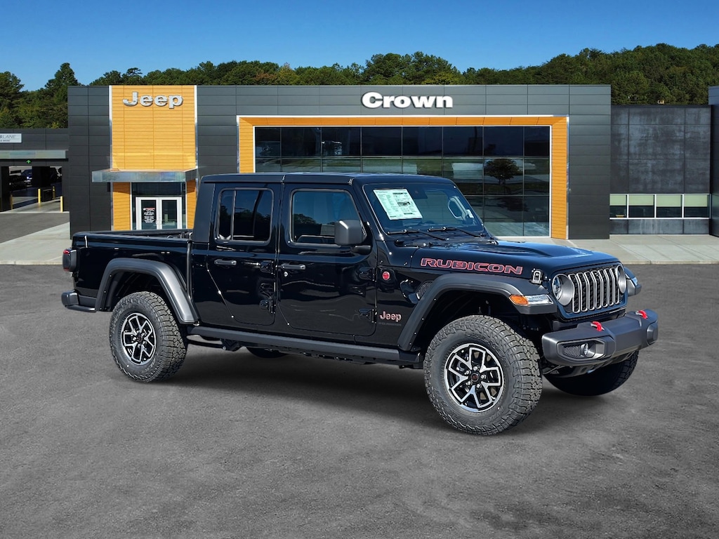 12.3" Touchscreen Display, 4-Wheel Disc Brakes, 4.10 Rear Axle Ratio, 4G LTE Wi-Fi Hot Spot, 8 Speakers, 97 MPH Vehicle Max Speed Calibration, ABS brakes, Air Conditioning, Alexa Built-In, Alloy wheels, Alpine Premium Audio System, AM/FM radio: SiriusXM, Apple CarPlay, Apple CarPlay/Android Auto, Auto High Beam Headlamp Control, Auto-Dimming Rear-View Mirror, Automatic temperature control, Black 3-Piece Hard Top, Blind Spot & Cross Path Detection, Bluetooth Wireless Speaker, Brake assist, Cloth Low-Back Bucket Seats, Compass, Connected Travel & Traffic Services, Connectivity - US/Canada, Convenience Group, Delay-off headlights, Driver door bin, Driver vanity mirror, Dual front impact airbags, Dual front side impact airbags, Electronic Stability Control, Emergency communication system: Jeep Connect, Freedom Panel Storage Bag, Front anti-roll bar, Front Bucket Seats, Front Center Armrest w/Storage, Front dual zone A/C, Front fog lights, Front reading lights, Fully automatic headlights, Google Android Auto, GPS Antenna Input, GPS Navigation, HD Radio, Heated door mirrors, Heated Front Seats, Heated Steering Wheel, Illuminated entry, Integrated Off-Road Camera, Integrated roll-over protection, Integrated Voice Command w/Bluetooth, Low tire pressure warning, MOPAR Spray In Bedliner, Occupant sensing airbag, Outside temperature display, Overhead airbag, Panic alarm, ParkSense Rear Park Assist System, Passenger door bin, Passenger vanity mirror, Performance Suspension, Power door mirrors, Power steering, Power windows, Quick Order Package 24R Rubicon, Radio data system, Radio: Uconnect 5 Nav w/12.3" Display, Radio: Uconnect 5 w/12.3" Display, Rear anti-roll bar, Rear reading lights, Rear Sliding Window, Rear Window Defroster, Remote keyless entry, Remote Start System, Safety Group, Security system, SiriusXM Radio Service, SiriusXM w/360L, Speed control, Split folding rear seat, Steering wheel mounted audio controls, Tachometer, Technology Group, Telescoping steering wheel, Tilt steering wheel, Traction control, Trip computer, Universal Garage Door Opener, USB Host Flip, Variably intermittent wipers, Voltmeter, Wheels: 17" x 7.5" Machined/Painted Black. 2025 Jeep Gladiator Rubicon Rubicon Black Clearcoat 4WD 8-Speed Automatic 3.6L V6 24V VVT