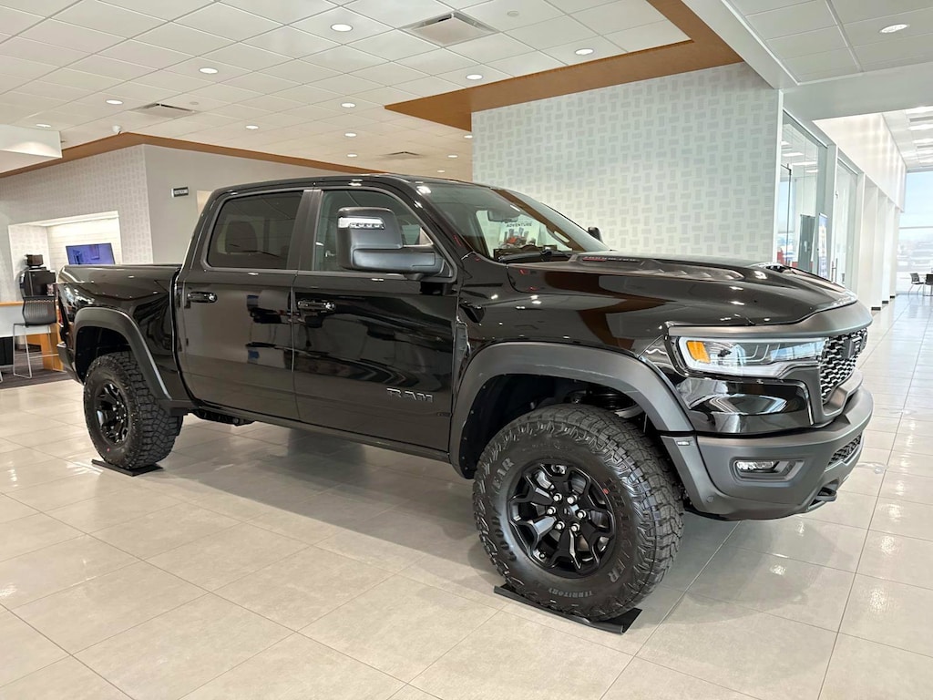 10 Speakers, 12-Way/1-Way Trailer Connector, 14.4" Touchscreen Display, 240 Amp Alternator, 3.92 Rear Axle Ratio, 4-Wheel Disc Brakes, 4G LTE Wi-Fi Hot Spot, ABS brakes, Adaptive suspension, Adjustable pedals, Air Conditioning, Alloy wheels, AM/FM radio, Apple CarPlay/Android Auto, Auto High-beam Headlights, Auto Power-Folding Mirrors, Auto-dimming door mirrors, Auto-Dimming Exterior Driver Mirror, Auto-Dimming Exterior Passenger Mirror, Auto-dimming Rear-View mirror, Automatic temperature control, Bed Utility Group, Black Exterior Mirrors, Black Power-Fold Trailer Tow Mirrors, Brake assist, Compass, Connected Travel and Traffic Services, Connectivity - US/Canada, Delay-off headlights, Disassociated Touchscreen Display, Dome Dual LED Reading Lamp, Driver door bin, Driver Power Seat Back Massage, Driver Seat Memory, Driver vanity mirror, Driver/Passenger Wrapped Assist Handles, Drowsy Driver Detection, Dual front impact airbags, Dual front side impact airbags, Dual Wireless Charging Pad, Dual-Pane Panoramic Sunroof, Electronic Stability Control, Evasive Steer Assist, Exterior 115V AC Outlet, Exterior Mirrors Courtesy Lamps, Exterior Mirrors with Heating Element, Exterior Mirrors with Memory, Exterior Mirrors with Supplemental Signals, Exterior Parking Camera Rear, Flareside Box, Forward and Reverse Utility Lights, Front anti-roll bar, Front Bucket Seats, Front Center Armrest w/Storage, Front dual zone A/C, Front fog lights, Front Passenger Interactive Display, Front Passenger Power Seat Back Massage, Front reading lights, Front wheel independent suspension, Full Length Premium Upgraded Floor Console, Fully automatic headlights, Garage door transmitter, GPS Navigation, Hands-Free Active Driving Assist System, Harman/Kardon 19 Speaker Premium Sound, HD Radio, Heads-Up Display, Heated door mirrors, Heated front seats, Heated Second Row Seats, Heated steering wheel, Illuminated entry, Integrated Center Stack Radio, Integrated Voice Command with Bluetooth, Intersection Collision Assist System, Leather Shift Knob, Leather steering wheel, Leather Trimmed Bucket Seats, Leather/Carbon Flat-Bottom Steering Wheel, LED CHMSL Lamp, Low tire pressure warning, Luxury Front Door Trim Panel, Mirror Clearance/Running Lights, MOPAR 4 Adjustable Cargo Tie-Down Hooks, MOPAR Deployable Bed Step, Navigation System, Occupant sensing airbag, Outside temperature display, Overhead airbag, Overhead console, Panic alarm, Passenger door bin, Passenger vanity mirror, Power Adjustable Pedals with Memory, Power door mirrors, Power driver seat, Power passenger seat, Power steering, Power Tailgate, Power Telescoping Mirrors, Power windows, Power-Adjustable Convex Aux Mirrors, Premium Wrapped Instrument Panel Bezel, Quick Order Package 22Y RHO, Radio data system, Radio: Uconnect 5 Nav with 14.4" Display, Radio: Uconnect 5 Navigation with 12.0" Display, Radio/Driver Seat/Mirrors/Pedals Memory, Rain Sensitive Windshield Wipers, Real Carbon Fiber Interior Accents, Rear 60/40 Folding Split Recline Seat, Rear reading lights, Rear seat center armrest, Rear step bumper, Rear window defroster, Remote keyless entry, RHO Level 1 Equipment Group, Security system, SiriusXM Radio Service, Smartphone as a Key Capable, Speed control, Split folding rear seat, Sport steering wheel, Steering wheel mounted audio controls, Surround View Camera System, Tachometer, Telescoping steering wheel, Tilt steering wheel, Towing Technology Group, Traction control, Traffic Sign Recognition, Trailer Hitch Line-Up Assist, Trailer Reverse Guidance, Trailer Reverse Steering Control, Trailer Tire Pressure Monitoring System, Trailer Tow Group, Trailer Tow Mirrors, Trip computer, Turn signal indicator mirrors, USB Host Flip, Variably intermittent wipers, Ventilated Front Seats, Ventilated Rear Seats, Voltmeter, Wheels: 18" x 9" Black Paint/Polish Aluminum. 2026 Ram 1500 RHO RHO Diamond Black Crystal Pearlcoat 4WD 8-Speed Automatic 3.0L I6