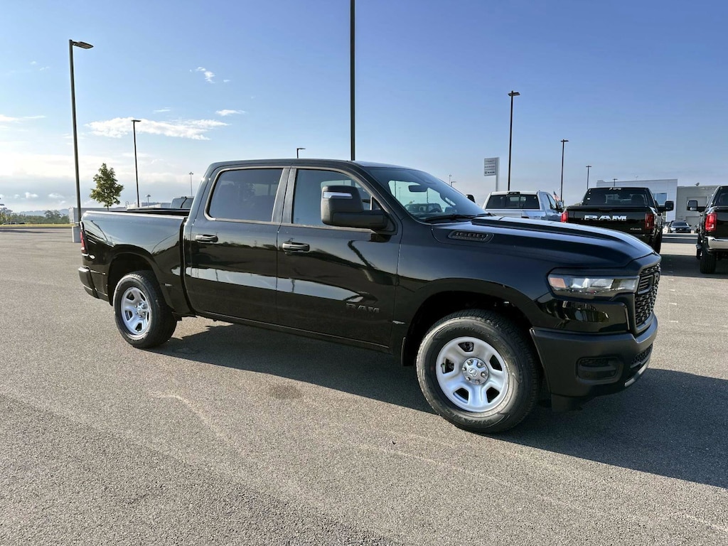 2nd Row In Floor Storage Bins, 33 Gallon Fuel Tank, 4 Way Front Headrests, 4-Wheel Disc Brakes, 48V Belt Starter Generator, 4G LTE Wi-Fi Hot Spot, 6 Speakers, ABS brakes, Accent Color Tailgate Handle, Air Conditioning, AM/FM radio, Apple CarPlay, Apple CarPlay/Android Auto, Auto High-beam Headlights, Black Exterior Mirrors, Black Trailer Tow Power Mirrors, Brake assist, Cloth Bench Seat, Compass, Connectivity - US/Canada, Delay-off headlights, Driver door bin, Dual front impact airbags, Dual front side impact airbags, Electronic Stability Control, Exterior Mirrors Courtesy Lamps, Exterior Mirrors w/Heating Element, Exterior Mirrors w/Supplemental Signals, For Details Visit DriveUconnect.com, Front & Rear Floor Mats, Front anti-roll bar, Front Center Armrest, Front reading lights, Front wheel independent suspension, Fully automatic headlights, Global Telematics Box Module (TBM), Google Android Auto, GPS Antenna Input, Heated door mirrors, Heavy Duty Vinyl 40/20/40 Split Bench Seat, Illuminated entry, Integrated Center Stack Radio, Integrated Voice Command w/Bluetooth, Low tire pressure warning, Manual Adjust 4-Way Driver Seat, Manual Adjust 4-Way Front Passenger Seat, Manual Folding Exterior Mirrors, Manual Telescoping Mirrors, Mirror Clearance/Running Lights, Occupant sensing airbag, Outside temperature display, Overhead airbag, Overhead console, Panic alarm, ParkView Rear Back-Up Camera, Passenger door bin, Passenger vanity mirror, Power door mirrors, Power steering, Power windows, Power-Adjustable Convex Aux Mirrors, Quick Order Package 21A Tradesman, Radio data system, Radio: Uconnect 5 W w/8.4" Display, Rear anti-roll bar, Rear Folding Seat, Rear Power Sliding Window, Rear step bumper, Remote keyless entry, SiriusXM Radio Service, SiriusXM Satellite Radio, Speed control, Supplier Part Tracking (J-1), Tachometer, Telescoping steering wheel, Tilt steering wheel, Towing Technology Group, Traction control, Tradesman Level 1 Equipment Group, Trailer Brake Control, Trailer Hitch Line-Up Assist, Trailer Reverse Steering Control, Trailer Tire Pressure Monitoring System, Trailer Tow Group, Trailer Tow Mirrors, USB Host Flip, Variably intermittent wipers, Voltmeter, Wheels: 18" x 7.5" Steel Painted. 2026 Ram 1500 Tradesman Tradesman Diamond Black Crystal Pearlcoat 4WD 8-Speed Automatic 3.0L I6