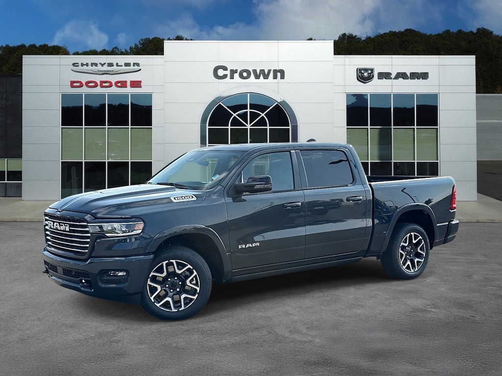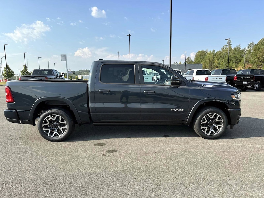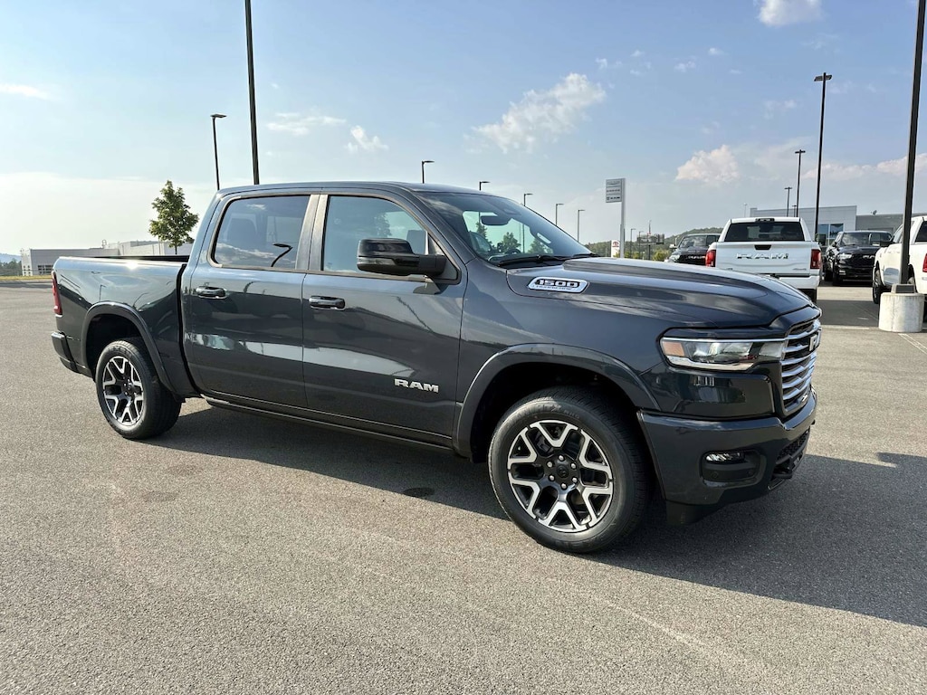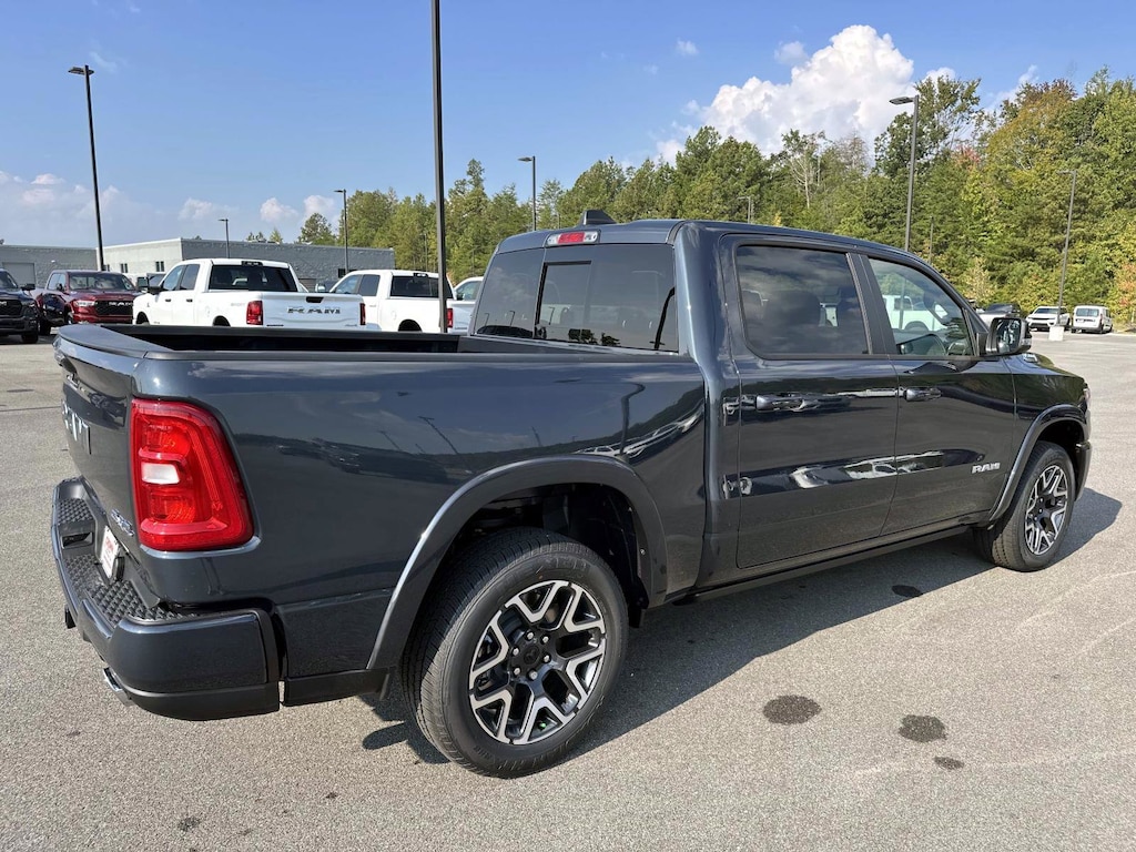 10 Speakers, 3.55 Rear Axle Ratio, 4-Wheel Disc Brakes, 4G LTE Wi-Fi Hot Spot, ABS brakes, Accent Color Premium Power Mirrors, Active Noise Control System, Air Conditioning, Alloy wheels, AM/FM radio: SiriusXM with 360L, Anti-Spin Differential Rear Axle, Apple CarPlay, Apple CarPlay/Android Auto, Audio memory, Auto High-beam Headlights, Auto Power-Folding Mirrors, Auto-dimming door mirrors, Auto-Dimming Exterior Driver Mirror, Auto-dimming Rear-View mirror, Automatic temperature control, Black Painted Exterior Mirrors Caps, Body Color Front Bumper, Body Color Rear Bumper w/Step Pads, Brake assist, Bumpers: chrome, Chrome Exterior Mirrors, Compass, Connected Travel & Traffic Services, Connectivity - US/Canada, Convex Wide-Angle Exterior Mirror Insert, Delay-off headlights, Disassociated Touchscreen Display, Dome Dual LED Reading Lamp, Driver door bin, Driver vanity mirror, Dual front impact airbags, Dual front side impact airbags, Dual-Pane Panoramic Sunroof, Electronic Stability Control, Exterior Mirrors Courtesy Lamps, Exterior Mirrors w/Heating Element, Exterior Mirrors w/Memory, Exterior Mirrors w/Supplemental Signals, Front anti-roll bar, Front Bucket Seats, Front Center Armrest w/Storage, Front dual zone A/C, Front fog lights, Front reading lights, Front wheel independent suspension, Fully automatic headlights, Garage door transmitter, Global Telematics Box Module (TBM), Google Android Auto, GPS Antenna Input, GPS Navigation, Grille Surround 3 Body Color Tex 4 Chrome, HD Radio, Heated door mirrors, Heated front seats, Heated rear seats, Heated steering wheel, Illuminated entry, Integrated Center Stack Radio, Integrated Voice Command w/Bluetooth, Laramie Level 1 Equipment Group, Laramie Southwest Edition, Leather steering wheel, Leather Trimmed Bucket Seats, LED Dome/Reading Lamp, Low tire pressure warning, Memory seat, MOPAR Front & Rear Rubber Floor Mats, MOPAR Lockable Console Storage (DISC), Navigation System, Occupant sensing airbag, Off-Road Information Pages, Outside temperature display, Overhead airbag, Overhead console, Panic alarm, ParkView Rear Back-Up Camera, Passenger door bin, Passenger vanity mirror, Power Deployable Running Boards, Power door mirrors, Power driver seat, Power passenger seat, Power steering, Power windows, Quick Order Package 21H Laramie, Radio data system, Radio: Uconnect 5 Nav w/12.0" Display, Rain Sensitive Windshield Wipers, RAM Grille Badge - Chrome, Rear anti-roll bar, Rear reading lights, Rear seat center armrest, Rear step bumper, Remote keyless entry, Remote Tailgate Release, Secondary Active Grille Shutters, Security system, SiriusXM Radio Service, SiriusXM w/360L, Speed control, Split folding rear seat, Steering wheel mounted audio controls, Tachometer, Telescoping steering wheel, Tilt steering wheel, Tow Hooks, Traction control, Trailer Brake Control, Trip computer, Turn signal indicator mirrors, USB Host Flip, Variably intermittent wipers, Ventilated front seats, Voltmeter, Wheels: 20" x 9" Premium Paint/Polish, Wireless Charging Pad. 2026 Ram 1500 Laramie Laramie Forged Blue Metallic 4WD 8-Speed Automatic 3.0L I6