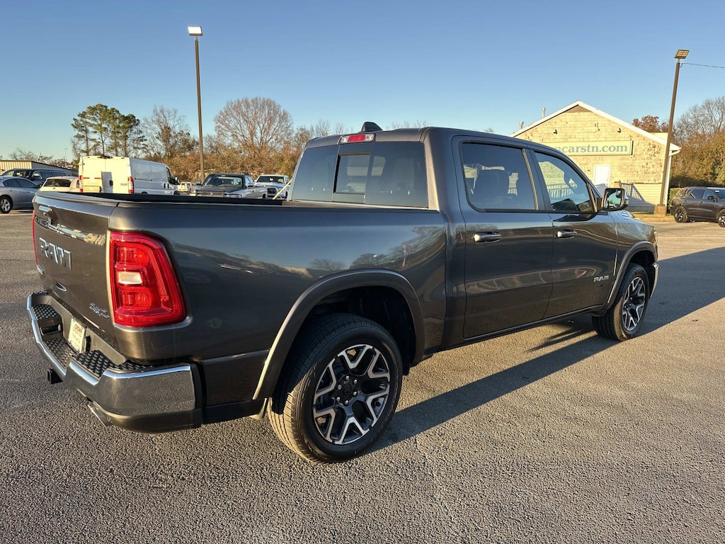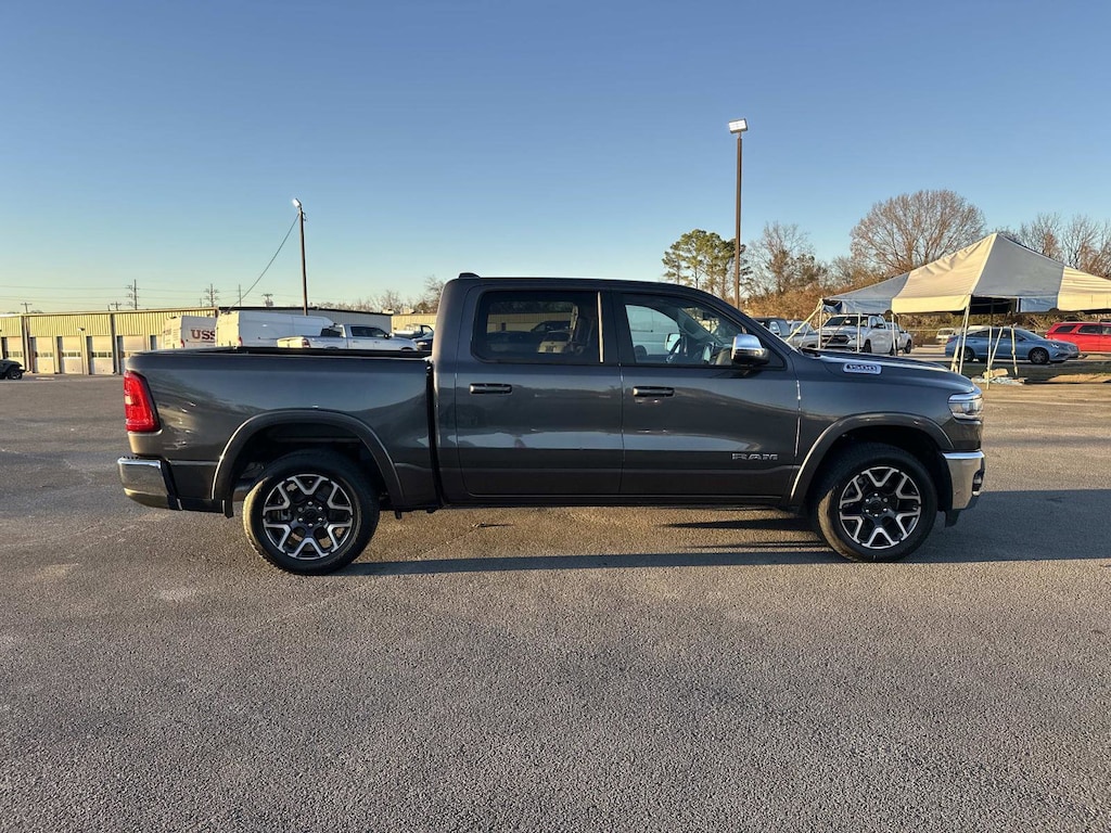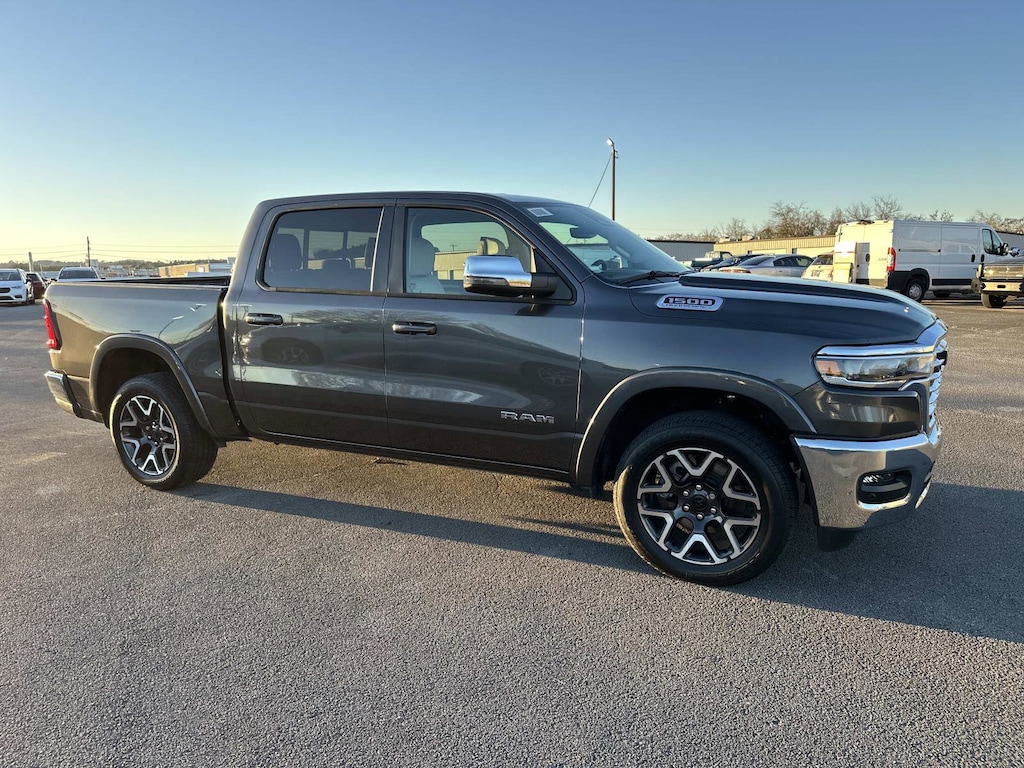 10 Speakers, 14.4" Touchscreen Display, 3.55 Rear Axle Ratio, 3.92 Rear Axle Ratio, 4-Wheel Disc Brakes, 4G LTE Wi-Fi Hot Spot, ABS brakes, Air Conditioning, Alloy wheels, AM/FM radio: SiriusXM with 360L, Apple CarPlay, Apple CarPlay/Android Auto, Audio memory, Auto High-beam Headlights, Auto Power-Folding Mirrors, Auto-dimming door mirrors, Auto-Dimming Exterior Driver Mirror, Auto-dimming Rear-View mirror, Automatic temperature control, Brake assist, Bumpers: chrome, Chrome Exterior Mirrors, Cluster 12" TFT Color Display, Compass, Connected Travel & Traffic Services, Connectivity - US/Canada, Convex Wide-Angle Exterior Mirror Insert, Delay-off headlights, Disassociated Touchscreen Display, Driver door bin, Driver vanity mirror, Dual front impact airbags, Dual front side impact airbags, Dual Wireless Charging Pad, Electronic Stability Control, Exterior Mirrors Courtesy Lamps, Exterior Mirrors w/Heating Element, Exterior Mirrors w/Memory, Exterior Mirrors w/Supplemental Signals, Front anti-roll bar, Front Bucket Seats, Front Center Armrest w/Storage, Front dual zone A/C, Front fog lights, Front Passenger Interactive Display, Front reading lights, Front wheel independent suspension, Fully automatic headlights, Garage door transmitter, Global Telematics Box Module (TBM), Google Android Auto, GPS Antenna Input, GPS Navigation, harman/kardon 19 Speaker Premium Sound, HD Radio, Heated door mirrors, Heated front seats, Heated rear seats, Heated steering wheel, Illuminated entry, Integrated Center Stack Radio, Integrated Voice Command w/Bluetooth, Laramie Level 2 Equipment Group, Leather steering wheel, Leather Trimmed Bucket Seats, Low tire pressure warning, Memory seat, MOPAR Front & Rear Rubber Floor Mats, Navigation System, Occupant sensing airbag, Off-Road Information Pages, Outside temperature display, Overhead airbag, Overhead console, Panic alarm, ParkView Rear Back-Up Camera, Passenger door bin, Passenger vanity mirror, Power door mirrors, Power driver seat, Power passenger seat, Power steering, Power Tailgate, Power windows, Quick Order Package 21H Laramie, Radio data system, Radio: Uconnect 5 Nav w/12.0" Display, Radio: Uconnect 5 Nav w/14.4" Display, Rain Sensitive Windshield Wipers, RAM Grille Badge - Chrome, Rear anti-roll bar, Rear reading lights, Rear seat center armrest, Rear step bumper, Remote keyless entry, Secondary Active Grille Shutters, Security system, SiriusXM Radio Service, SiriusXM w/360L, Smartphone As A Key Capable, Speed control, Split folding rear seat, Steering wheel mounted audio controls, Tachometer, Telescoping steering wheel, Tilt steering wheel, Traction control, Trailer Brake Control, Trip computer, Turn signal indicator mirrors, USB Host Flip, Variably intermittent wipers, Ventilated front seats, Voltmeter, Wheels: 20" x 9" Premium Paint/Polish. Granite Crystal Metallic Clearcoat 2026 Ram 1500 Laramie 4WD 8-Speed Automatic 3.0L I6