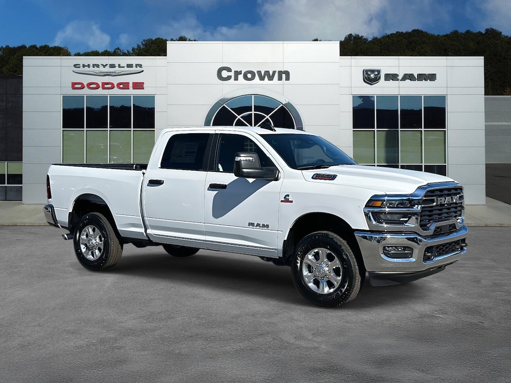 12" Touchscreen Display, 2 Way Rear Headrest Seat, 2nd Row In Floor Storage Bins, 4 Way Front Headrests, 4-Wheel Disc Brakes, 40/20/40 Split Bench Seat, 4G LTE Wi-Fi Hot Spot, 6 Speakers, 9 Alpine Speakers w/Subwoofer, ABS brakes, Air Conditioning, Air Conditioning ATC w/Dual Zone Control, Alexa Built-In, Alloy wheels, AM/FM radio: SiriusXM, Anti-Spin Differential Rear Axle, Apple CarPlay, Apple CarPlay/Android Auto, Auto Power-Folding Mirrors, Auto-Dimming Rear-View Mirror, Big Horn Level 1 Plus Equipment Group, Black Exterior Mirrors, Brake assist, Bumpers: chrome, Center Hub, Cloth 40/20/40 Bench Seat, Compass, Connected Travel & Traffic Services, Connectivity - US/Canada, Delay-off headlights, Disassociated Touchscreen Display, Driver door bin, Dual front impact airbags, Dual front side impact airbags, Dual Glove Boxes, Electronic Stability Control, Emergency Vehicle Alert System (EVAS), Exterior Mirrors Courtesy Lamps, Exterior Mirrors w/Heating Element, Exterior Mirrors w/Supplemental Signals, Foam Bottle Insert (Door Trim Panel), Folding Flat Load Floor Storage, Footwell Courtesy Lamp, For Details, Visit DriveUconnect.com, For More Info, Call 800-643-2112, Forward & Reverse Utility Lights, Front anti-roll bar, Front Armrest w/Cupholders, Front Center Armrest w/Storage, Front Center Seat Cushion Storage, Front fog lights, Front reading lights, Front Seat Back Map Pockets, Fully automatic headlights, Global Telematics Box Module (TBM), Glove Box Lamp, Google Android Auto, GPS Antenna Input, GPS Navigation, HD Radio, Heated door mirrors, Illuminated entry, Integrated Voice Command w/Bluetooth, LED Bed Lighting, Locking Lower Glove Box, Low tire pressure warning, Luxury Steering Wheel, Manual Adjust 4-Way Driver Seat, Manual Adjust 4-Way Front Passenger Seat, Mirror Running Lights, MOPAR Deployable Bed Step, MOPAR Spray In Bedliner, Occupant sensing airbag, Off-Road Info Pages, Outside temperature display, Overhead airbag, Overhead console, Panic alarm, ParkView Rear Back-Up Camera, Passenger door bin, Passenger vanity mirror, Power 2-Way Driver Lumbar Adjust, Power Adjust 8-Way Driver Seat, Power Adjust Mirrors, Power door mirrors, Power Heated Folding Telescopic Mirrors, Power steering, Power Telescoping Mirrors, Power windows, Power-Adjustable Convex Aux Mirrors, Premium Cloth 40/20/40 Bench Seat, Quick Order Package 24Z Big Horn, Radio data system, Radio: Uconnect 5 Nav w/12.0" Display, Radio: Uconnect 5 w/8.4" Display, Rear 60/40 Folding Seat, Rear anti-roll bar, Rear Dome w/On/Off Switch Lamp, Rear Folding Seat, Rear seat center armrest, Rear step bumper, Rear window defroster, Remote keyless entry, Remote Start System, Remote USB Port - Charge Only, Security system, Selectable Tire Fill Alert, SiriusXM Radio Service, SiriusXM w/360L, Speed control, Steering Wheel Mounted Audio Controls, Storage Tray, Tachometer, Tilt steering wheel, Traction control, Trailer Tow Pages, Trip computer, Turn signal indicator mirrors, Variably intermittent wipers, Voltmeter, Wheels: 18" x 8.0" Polished Aluminum. 2026 Ram 2500 Big Horn Big Horn Bright White Clearcoat 4WD 8-Speed Automatic 6.7L I6