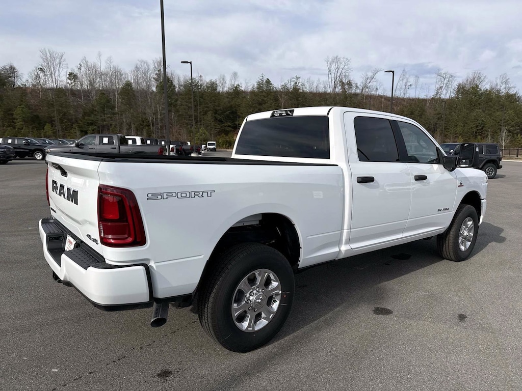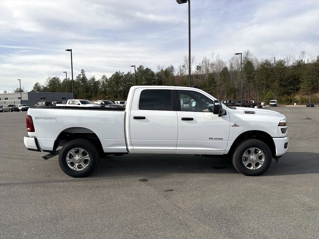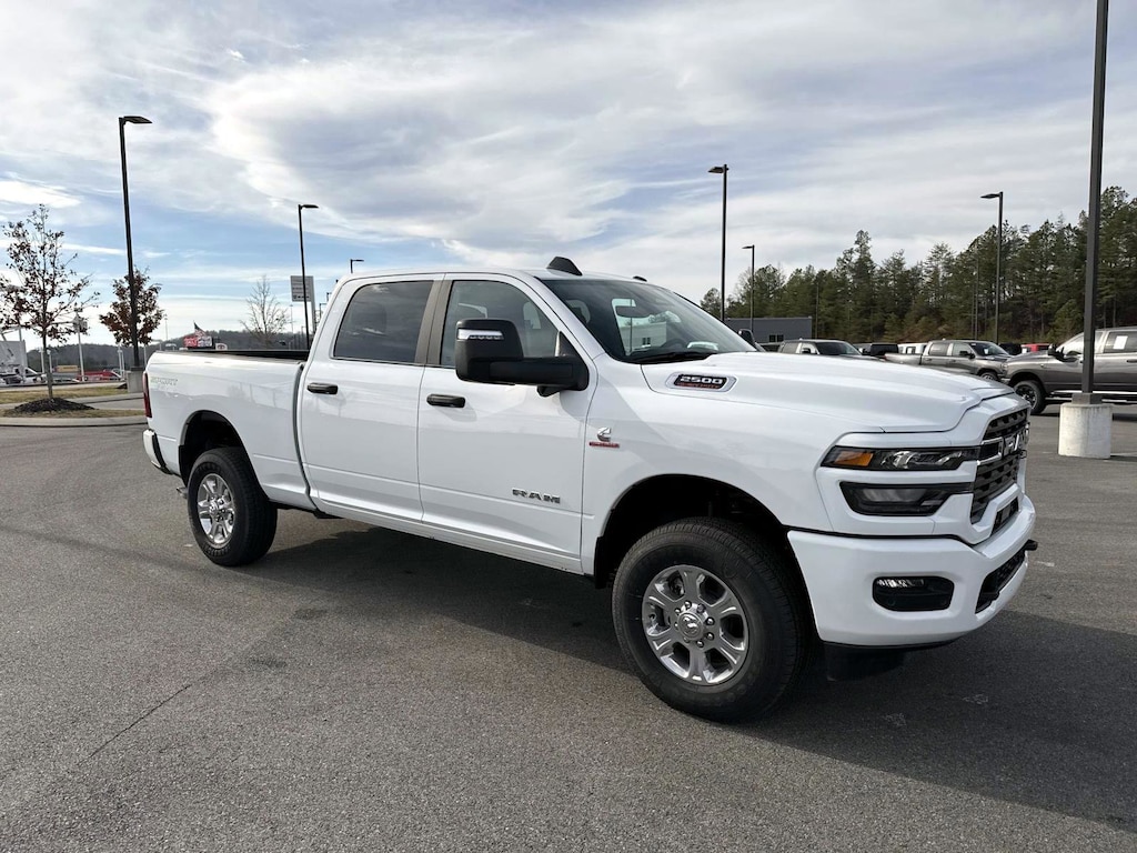 12" Touchscreen Display, 2 Way Rear Headrest Seat, 2nd Row in Floor Storage Bins, 4 Way Front Headrests, 4-Wheel Disc Brakes, 40/20/40 Split Bench Seat, 4G LTE Wi-Fi Hot Spot, 6 Speakers, 9 Alpine Speakers with Subwoofer, ABS brakes, Air Conditioning, Air Conditioning ATC with Dual Zone Control, Alexa Built-in, Alloy wheels, AM/FM radio: SiriusXM, Anti-Spin Differential Rear Axle, Apple CarPlay, Apple CarPlay/Android Auto, Auto Power-Folding Mirrors, Auto-Dimming Rear-View Mirror, Big Horn Level 1 Plus Equipment Group, Black Exterior Mirrors, Black Interior Accents, Blind Spot and Cross Path Detection, Body Color Grille-Surround, Brake assist, Bumpers: chrome, Center Hub, Center Stop Lamp with Cargo View Camera, Cloth 40/20/40 Bench Seat, Compass, Connected Travel and Traffic Services, Connectivity - US/Canada, Delay-off headlights, Disassociated Touchscreen Display, Driver door bin, Dual front impact airbags, Dual front side impact airbags, Dual Glove Boxes, Electronic Stability Control, Emergency Vehicle Alert System (EVAS), Exterior Mirrors Courtesy Lamps, Exterior Mirrors with Heating Element, Exterior Mirrors with Supplemental Signals, Foam Bottle Insert (door Trim Panel), Folding Flat Load Floor Storage, Footwell Courtesy Lamp, For Details, Visit DriveUconnect.com, For More Info, Call 800-643-2112, Forward and Reverse Utility Lights, Front anti-roll bar, Front Armrest with Cupholders, Front Center Armrest w/Storage, Front Center Seat Cushion Storage, Front fog lights, Front reading lights, Front Seat Back Map Pockets, Fully automatic headlights, Global Telematics Box Module, Glove Box Lamp, Google Android Auto, GPS Antenna Input, GPS Navigation, HD Radio, Heated door mirrors, Illuminated entry, Integrated Voice Command with Bluetooth, LED Bed Lighting, LED Tail Lamps, Locking Lower Glove Box, Low tire pressure warning, Luxury Steering Wheel, Manual Adjust 4-Way Driver Seat, Manual Adjust 4-Way Front Passenger Seat, Mirror Running Lights, MOPAR Deployable Bed Step, MOPAR Spray in Bedliner, Occupant sensing airbag, Off-Road Info Pages, Outside temperature display, Overhead airbag, Overhead console, Painted Front Bumper, Painted Rear Bumper, Panic alarm, ParkView Rear Back-Up Camera, Passenger door bin, Passenger vanity mirror, Power 2-Way Driver Lumbar Adjust, Power Adjust 8-Way Driver Seat, Power Adjust Mirrors, Power door mirrors, Power Heated Folding Telescopic Mirrors, Power steering, Power Telescoping Mirrors, Power windows, Power-Adjustable Convex Aux Mirrors, Premium Cloth 40/20/40 Bench Seat, Quick Order Package 24Z Big Horn, Radio data system, Radio: Uconnect 5 Navigation with 12.0" Display, Radio: Uconnect 5 with 8.4" Display, Rear 60/40 Folding Seat, Rear anti-roll bar, Rear Dome with on/Off Switch Lamp, Rear Folding Seat, Rear seat center armrest, Rear step bumper, Rear window defroster, Red Tail Lamp Bezels, Remote keyless entry, Remote Start System, Remote USB Port - Charge Only, Security system, Selectable Tire Fill Alert, SiriusXM Radio Service, SiriusXM with 360L, Speed control, Sport Appearance Package, Sport Decal, Steering Wheel Mounted Audio Controls, Storage Tray, Surround View Camera System, Tachometer, Tilt steering wheel, Towing Technology Group, Traction control, Trailer Reverse Guidance, Trailer Tire Pressure Monitoring System, Trailer Tow Pages, Trip computer, Turn signal indicator mirrors, Variably intermittent wipers, Voltmeter, Wheels: 18" x 8.0" Polished Aluminum. 2026 Ram 2500 Big Horn Big Horn Bright White Clearcoat 4WD 8-Speed Automatic 6.7L I6