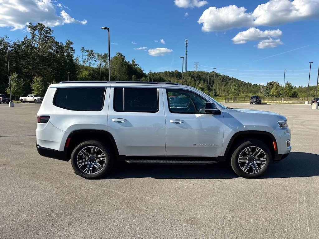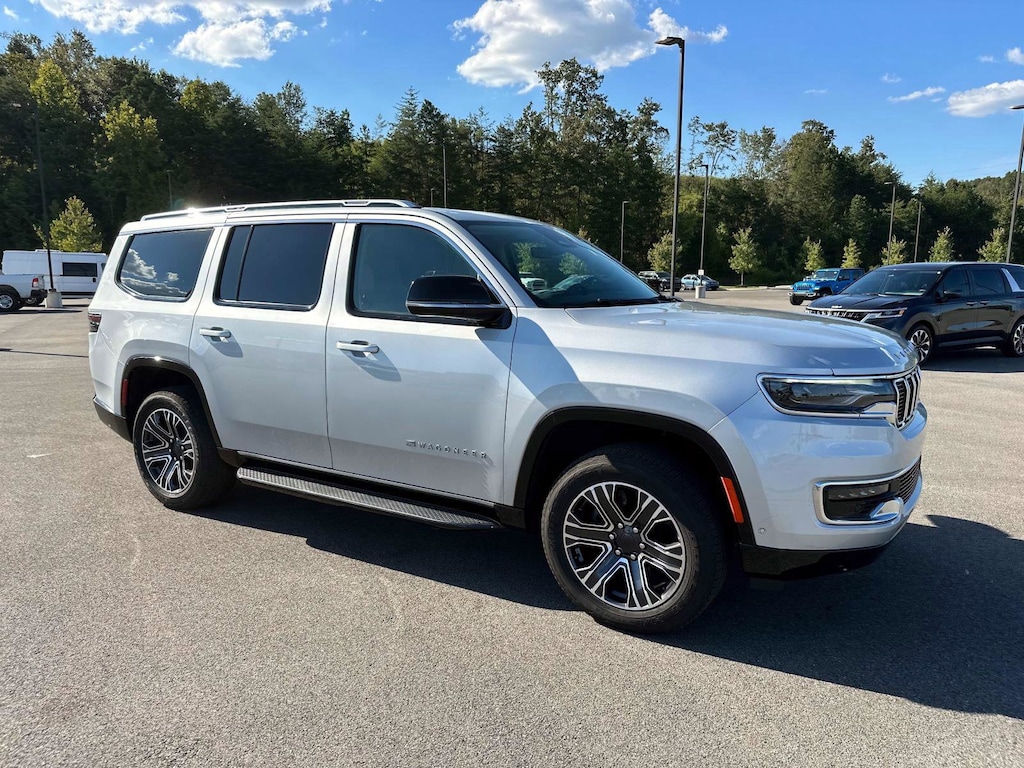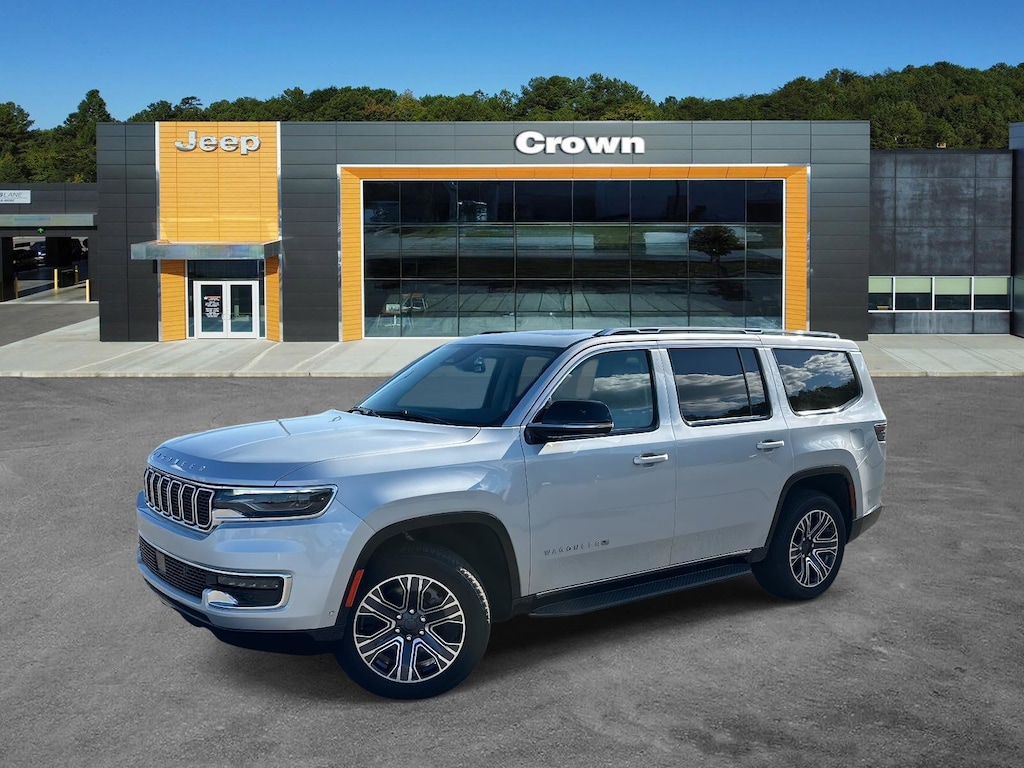 Clean CARFAX. 10 Speakers, 3 Panel Sunroof, 3.55 Rear Axle Ratio, 3rd row seats: bench, 4-Wheel Disc Brakes, ABS brakes, Adjustable pedals, Adjustable Roof Rail Crossbars, Air Conditioning, Alloy wheels, AM/FM radio: SiriusXM with 360L, Anti-whiplash front head restraints, Apple CarPlay/Android Auto, Audio memory, Auto-dimming door mirrors, Auto-dimming Rear-View mirror, Auto-leveling suspension, Automatic temperature control, Brake assist, Bumpers: body-color, Cargo Cover, Compass, Delay-off headlights, Driver door bin, Driver vanity mirror, Driver's Seat Mounted Armrest, Dual front impact airbags, Dual front side impact airbags, Electronic Stability Control, Emergency communication system: Wagoneer Connect, Exterior Parking Camera Rear, Four wheel independent suspension, Front anti-roll bar, Front Bucket Seats, Front Center Armrest w/Storage, Front dual zone A/C, Front fog lights, Front reading lights, Fully automatic headlights, Garage door transmitter, Heated door mirrors, Heated front seats, Heated steering wheel, Illuminated entry, Knee airbag, Leather Trimmed Bucket Seats, Low tire pressure warning, Memory seat, Navigation System, Normal Duty Suspension, Occupant sensing airbag, Outside temperature display, Overhead airbag, Overhead console, Panic alarm, Passenger door bin, Passenger seat mounted armrest, Passenger vanity mirror, Pedal memory, Power adjustable front head restraints, Power door mirrors, Power driver seat, Power Liftgate, Power passenger seat, Power steering, Power windows, Premium Group I, Quick Order Package 25E, Radio data system, Radio: Uconnect 5 Nav w/10.1" Display, Rear air conditioning, Rear anti-roll bar, Rear dual zone A/C, Rear reading lights, Rear seat center armrest, Rear window defroster, Rear window wiper, Reclining 3rd row seat, Remote keyless entry, Reversible Carpet/Vinyl Cargo Mat, Security system, Speed control, Speed-sensing steering, Speed-Sensitive Wipers, Split folding rear seat, Steering wheel memory, Steering wheel mounted audio controls, Tachometer, Telescoping steering wheel, Tilt steering wheel, Traction control, Trip computer, Turn signal indicator mirrors, Variably intermittent wipers, Ventilated front seats, Voltmeter, Wheels: 18" x 8.0" Aluminum Base Finish, Wheels: 20" x 9.0" Premium 2 Aluminum.